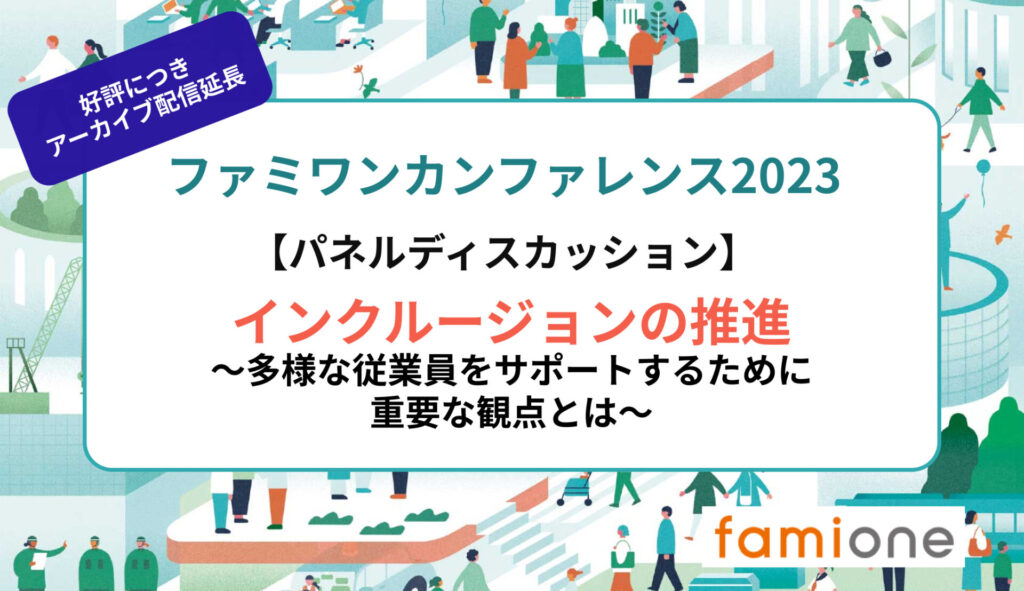 ファミワンカンファレンス2023 パネルディスカッション「インクルージョンの推進~多様な従業員をサポートするために重要な観点とは〜」のレポートです。 ファミワン -