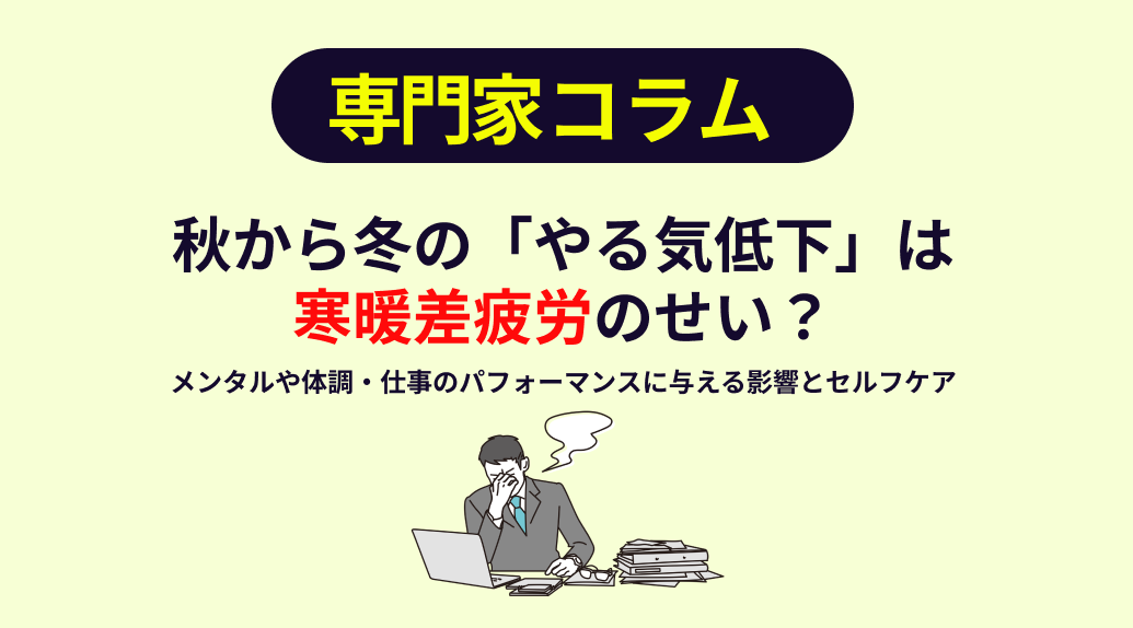 寒暖差疲労は「なんとなく不調」の正体かもしれません。「変化」をストレスだと感じるのは自然なことです。季節の変わり目こそ、自分の心身に目を向けて、パフォーマンスを守るセルフケアを意識してみましょう。