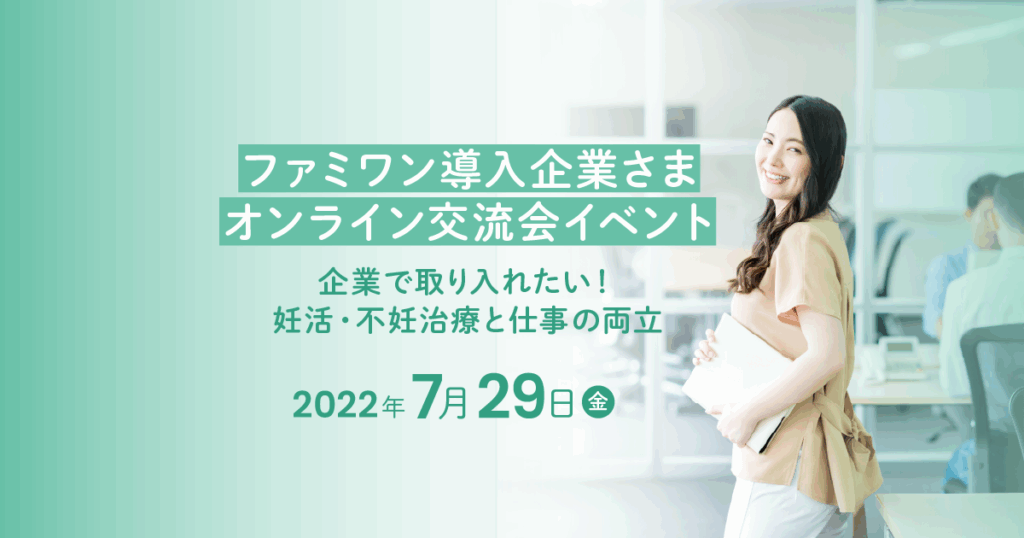 7月29日(金)、ファミワンでは初めてとなる「ファミワン 福利厚生サービス」導入企業様と提携企業様を対象とした交流会イベントを実施しました。本イベントは参加企業の皆さまが、最新の制度情報や不妊治療の実態をお伝えし「どんなサポートができるか」と... -