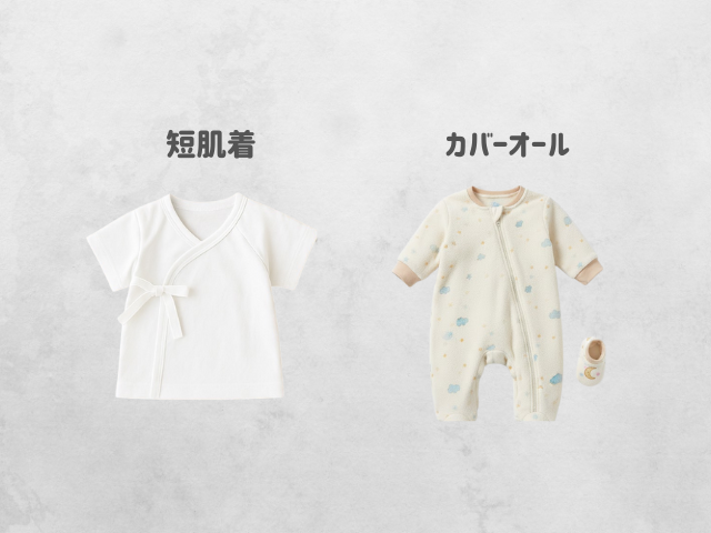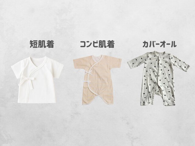 ②短肌着+コンビ肌着+カバーオール(薄手の生地)